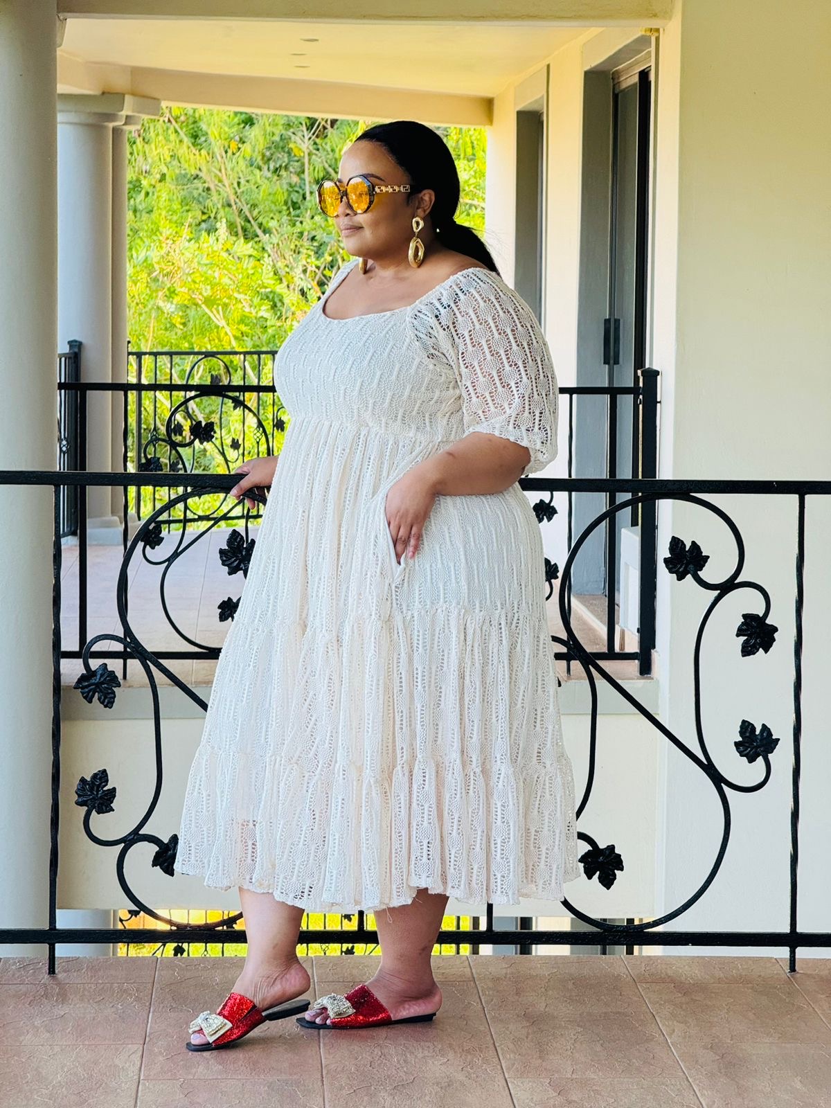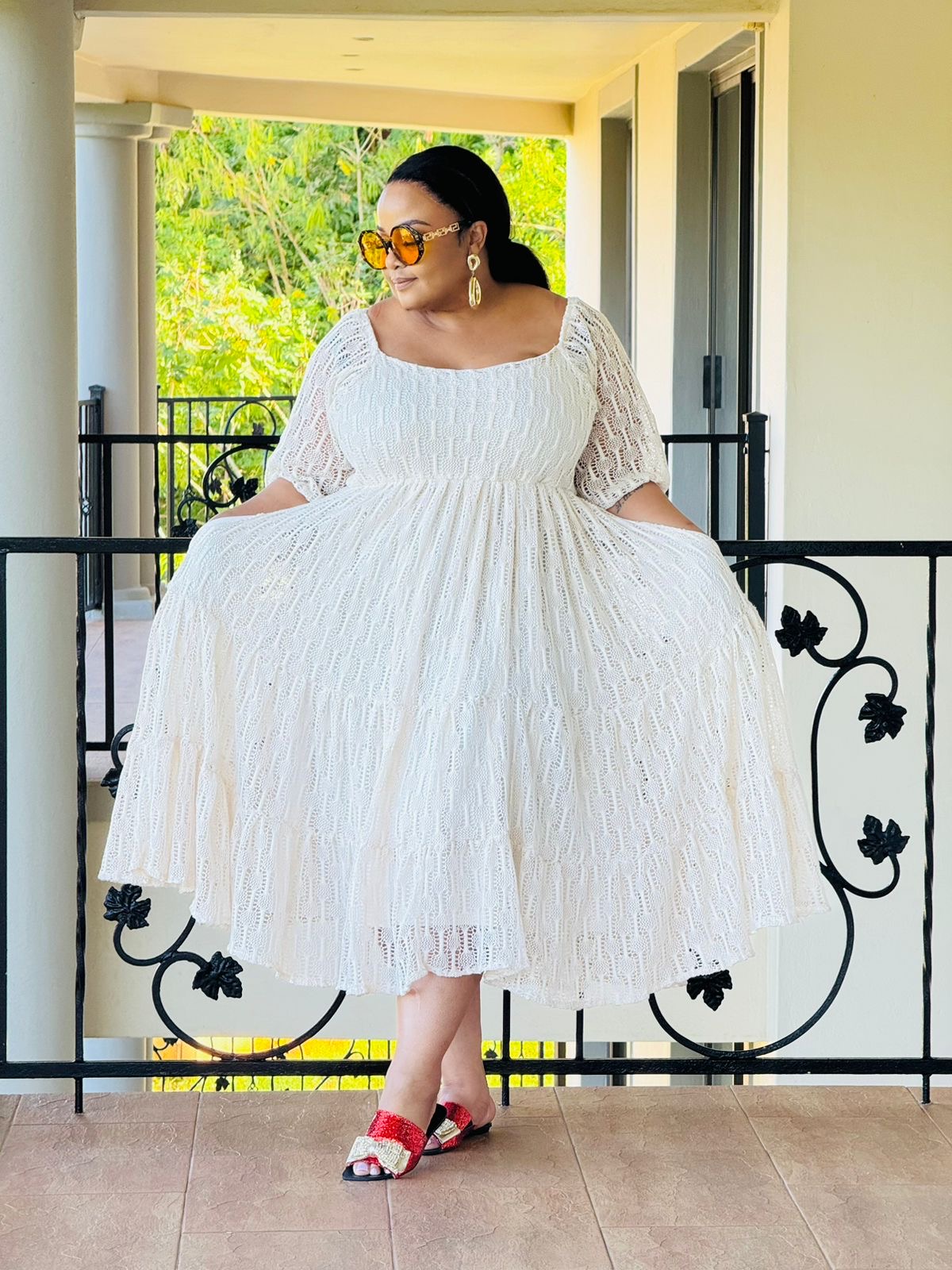 LACE FABRIC DRESS evate your winter wardrobe with our stunning dress, perfect for any occasion from brunch to a beach day. The flowy fabric and flattering silhouette will keep you cool and stylish all day long, while the vibrant color will make you stand out in a